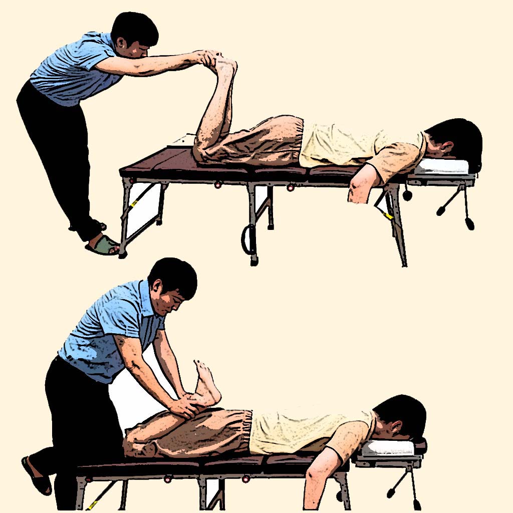 천골의 틀어짐 정도를 평가하기 위해 프론 레이즈(Prone Leg Raise) 검사를 시행합니다.